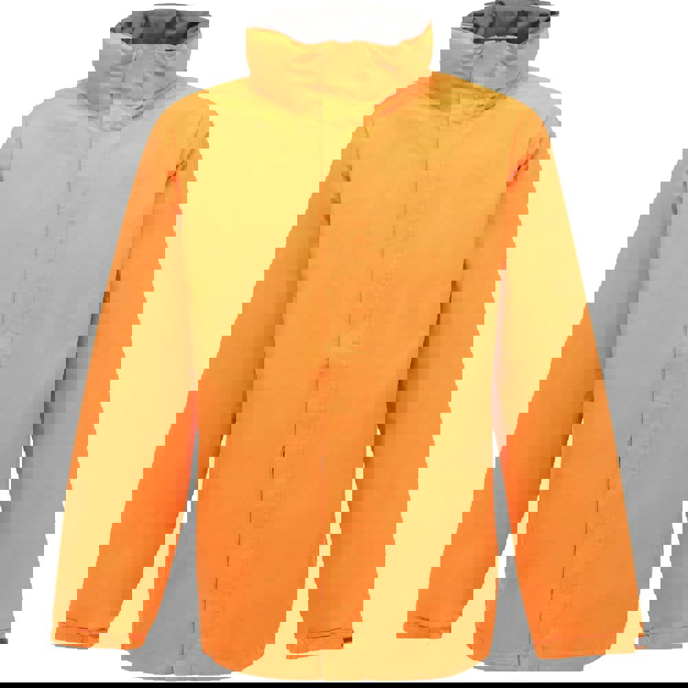 Regatta Professional Men’s Standout Ardmore Jacket in Sun Orange/Seal Grey is made from 100% Hydrafort polyester with a polyester mesh lining. The windproof fabric and taped seams provide a waterproof and windproof outer layer, suited to changeable weather. A concealed hood with an adjuster offers additional coverage when needed.
