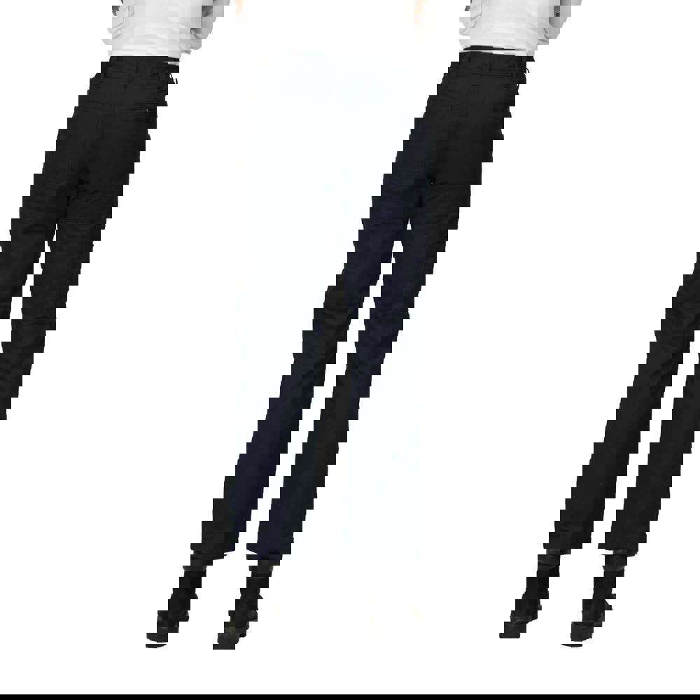 Regatta Professional Women’s Pro Action Stretch Trousers in navy are made from a stretch woven material with a plain finish. The waistband is part elasticated and includes belt loops, with a button and zip fastening for a secure closure. Practical detailing includes triple stitched seams and multiple pockets, including cargo storage, to keep essentials close at hand.