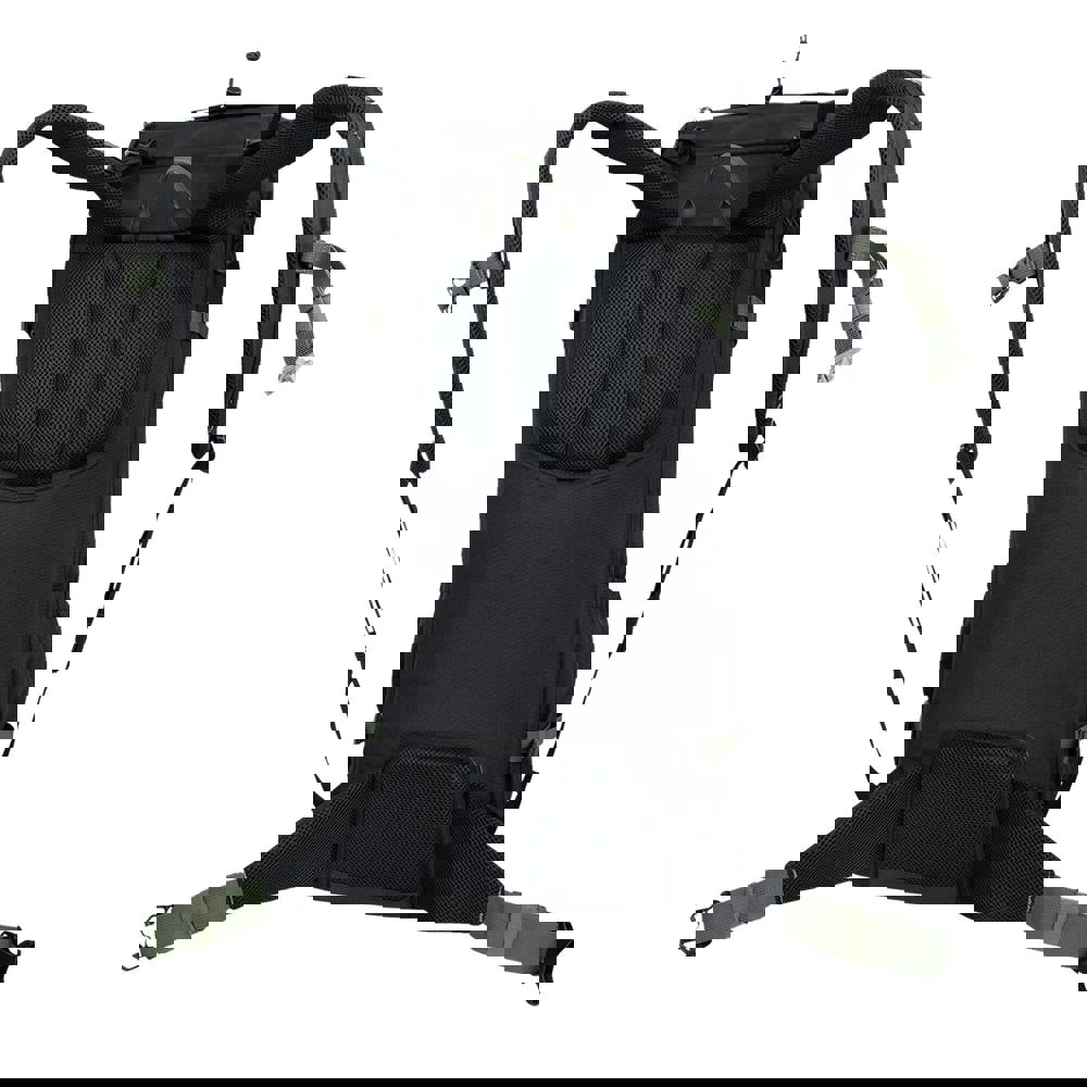 For comfortable carrying, it features padded, adjustable shoulder straps and an air mesh back, supported by back struts. Practical details include a grab handle for easy lifting, bungee storage for stashing extra items, and side compression straps to help stabilise the load. Reflective detailing adds visibility, and zip pullers make access simpler. The flap fastening is paired with a detachable rain cover, and the durable water repellent finish offers added protection in changeable conditions.
