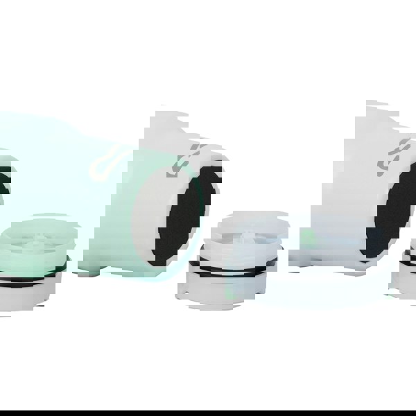 Its double-walled, insulated construction helps maintain your drink’s temperature, keeping drinks hot for up to 6 hours or cold for 12 hours. A carry handle makes it easier to transport, while the flip-up straw offers convenient sipping on the go. The screw top, spill-proof lid is designed to help reduce leaks, and a non-slip rubber base helps keep the mug steady on surfaces. Finished in pastel green with a logo design.