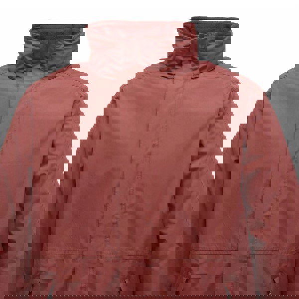 This unisex adult Dover bomber jacket is made with a 100% polyester outer and a fleece lining. It uses Hydrafort 5000 fabric with Symmetry fleece in a plain design and a 195gsm weight. A standing collar and concealed hood keep the profile clean, while the full zip fastening is finished with a storm flap.