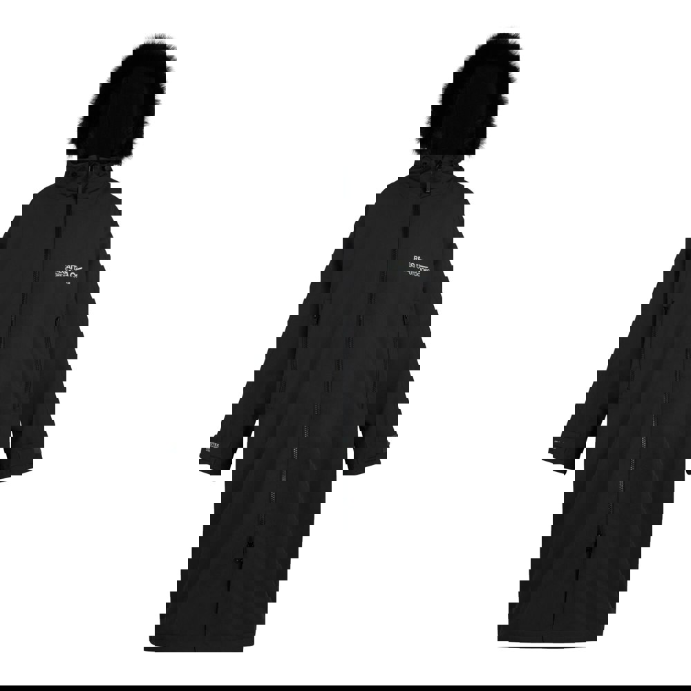 A borg fleece lining brings added comfort, paired with a hooded neckline and a grown-on hood trimmed with faux fur. Storage is practical with two zipped side pockets and one inner pocket. The plain design is finished with a back print, and touch fastening tabs at the cuffs allow a closer adjustment.