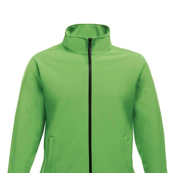 Regatta Women's Ablaze Printable Soft Shell Jacket in Extreme Green/Black is made from 100% polyester softshell with a woven, plain design and a 265gsm weight. It is warm-backed and finished with a durable water repellent treatment, with a waterproof construction for added protection.