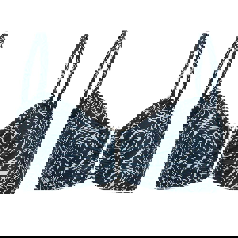 This bikini top is made from 85% polyester and 15% elastane, with a 200gsm handle. It comes in navy with an abstract floral all-over print and a sweetheart neckline for a defined shape. A clasp fastening keeps the fit secure, while adjustable shoulder straps allow for a personalised feel.