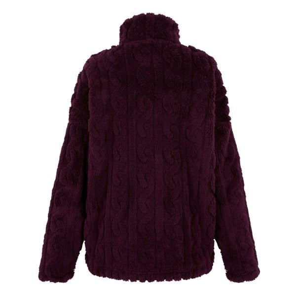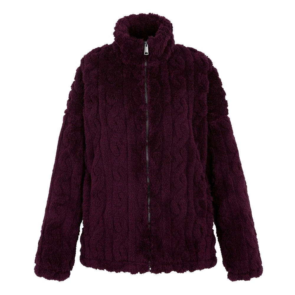 This full zip fleece jacket is made from 100% polyester and uses recycled materials. It has a printed design with a 250gsm weight, combining cable knit, diamond knit and fluffy textures for a distinctive finish. A standing collar and long sleeves create a clean, practical shape, while the drop shoulder construction keeps the silhouette relaxed.