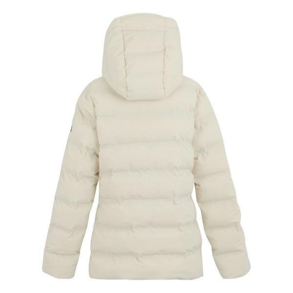 This women’s Altoro thermal padded jacket is made from recycled materials, with a stretch woven outer in 88% polyester and 12% elastane. It is insulated with feather-free synthetic down (300gsm) and finished with a polyamide lining. Quilted panelling and a logo detail complete the look, while heat sealed details and taped seams support the waterproof and windproof construction.