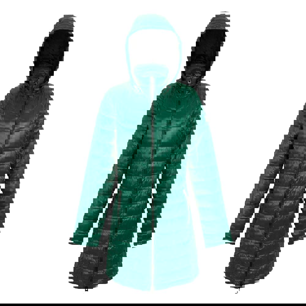 This quilted baffled jacket is made from 100% polyester with a midweight feel and a plain finish. It has insulated filling that is down and feather-free, with a lightweight, durable construction and a water repellent finish. Long sleeves and sleeve patches add detail, while the hooded neckline provides extra coverage for everyday wear.