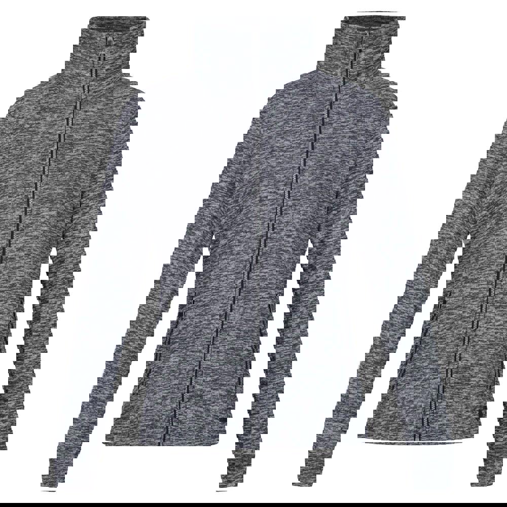 This full zip fleece jacket comes in a navy marl finish with a textured look. Made from polyester, it has a 145gsm weight and uses recycled materials. The long-sleeved design is finished with a turn down collar and a full zip fastening for straightforward layering.