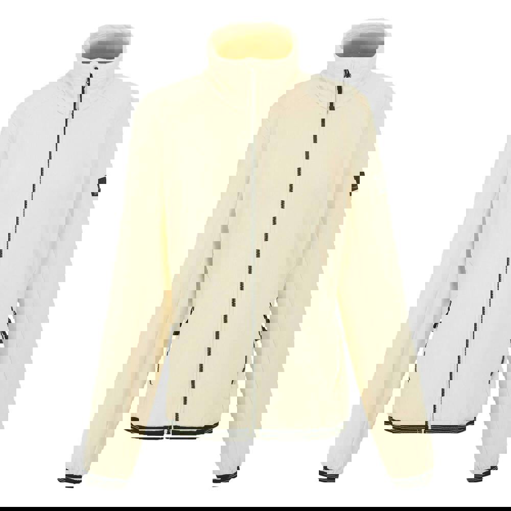 This zipped fleece jacket is made from 90% polyester and 10% elastane, with a soft-touch, stretch finish and a 260gsm weight. It has long sleeves with fitted cuffs and a standing collar with a chin guard for added coverage.