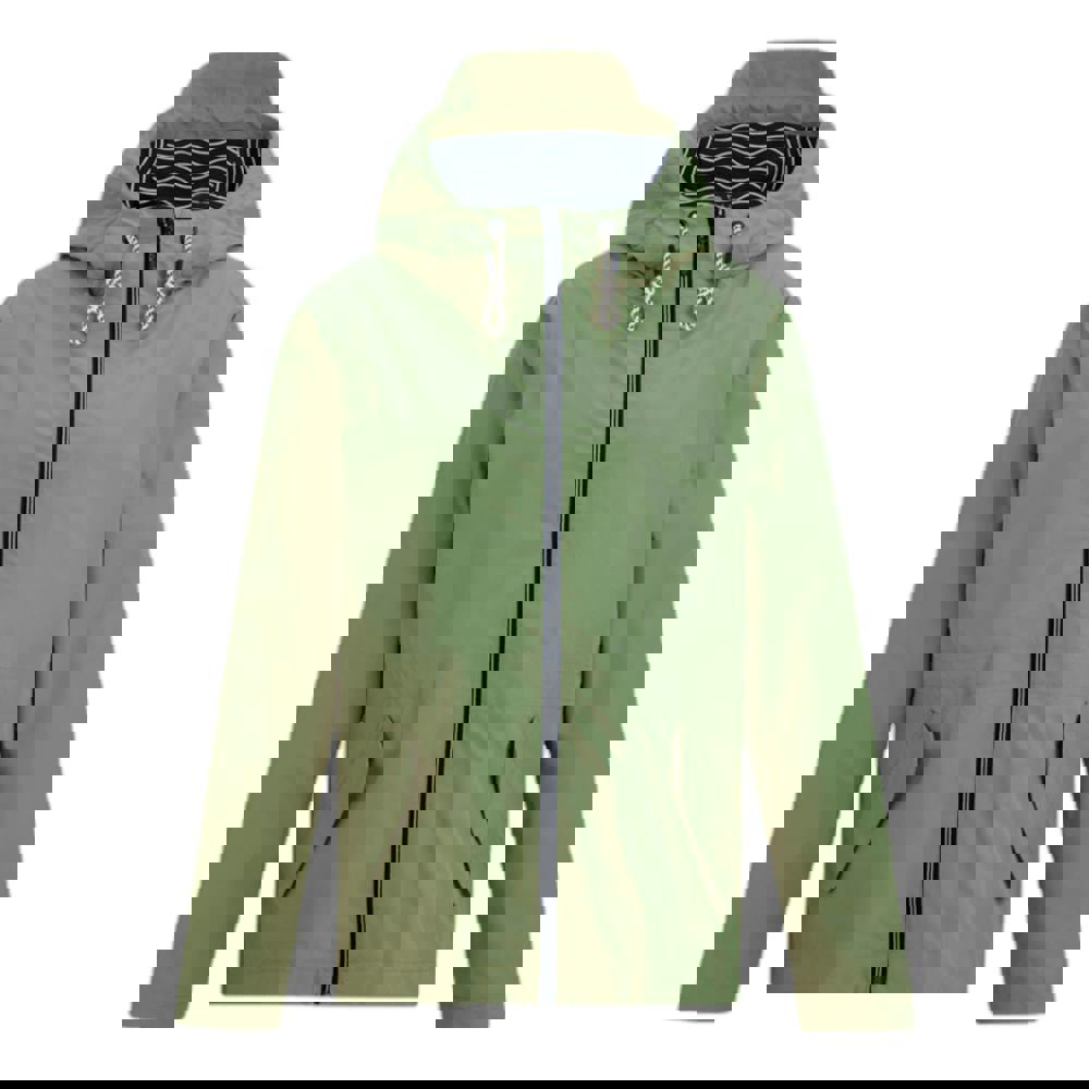 A grown-on hood with drawstring adjustment and a drawcord hem allow the shape to be adjusted. The long sleeves are finished with hook and loop cuff straps. Two lower pockets include zip entry and flap closure, and the jacket fastens with a full zip.
