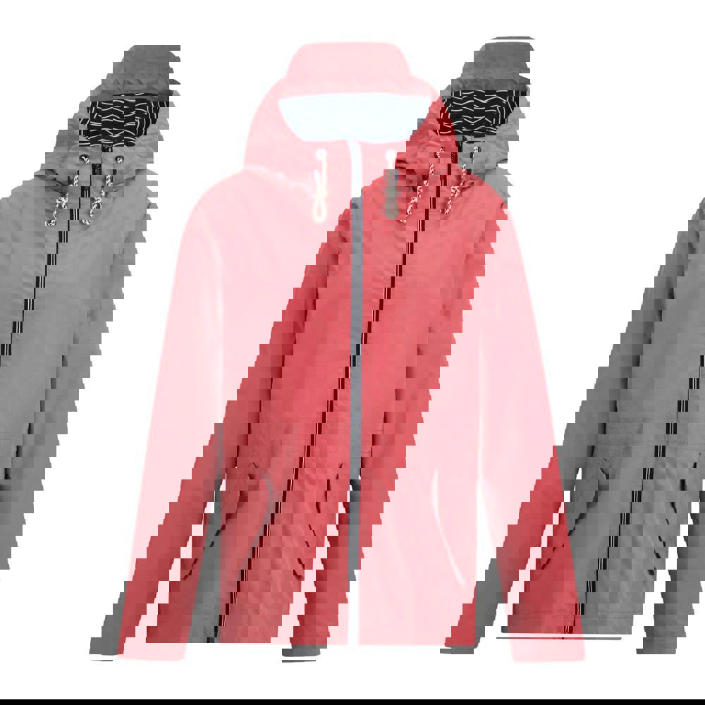 Regatta Bayletta Grid Distress waterproof jacket in slate rose. Made from 62% polyester and 38% recycled polyester, with a 110gsm construction and a 60gsm lining in jersey, soft taffeta. The design is plain with a logo detail.