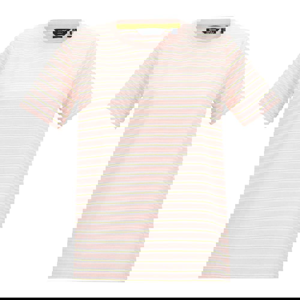 Regatta Bayletta is a striped women’s T-shirt in Pink Haze, made from a jersey blend with a soft-touch handle. The lightweight 155gsm construction keeps the finish simple and easy to wear, while the short sleeves suit everyday outfits.