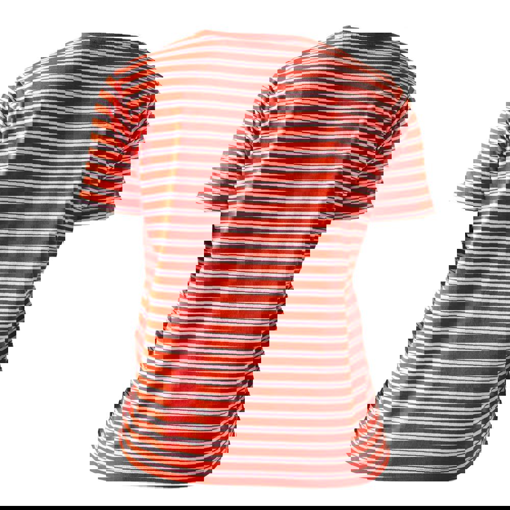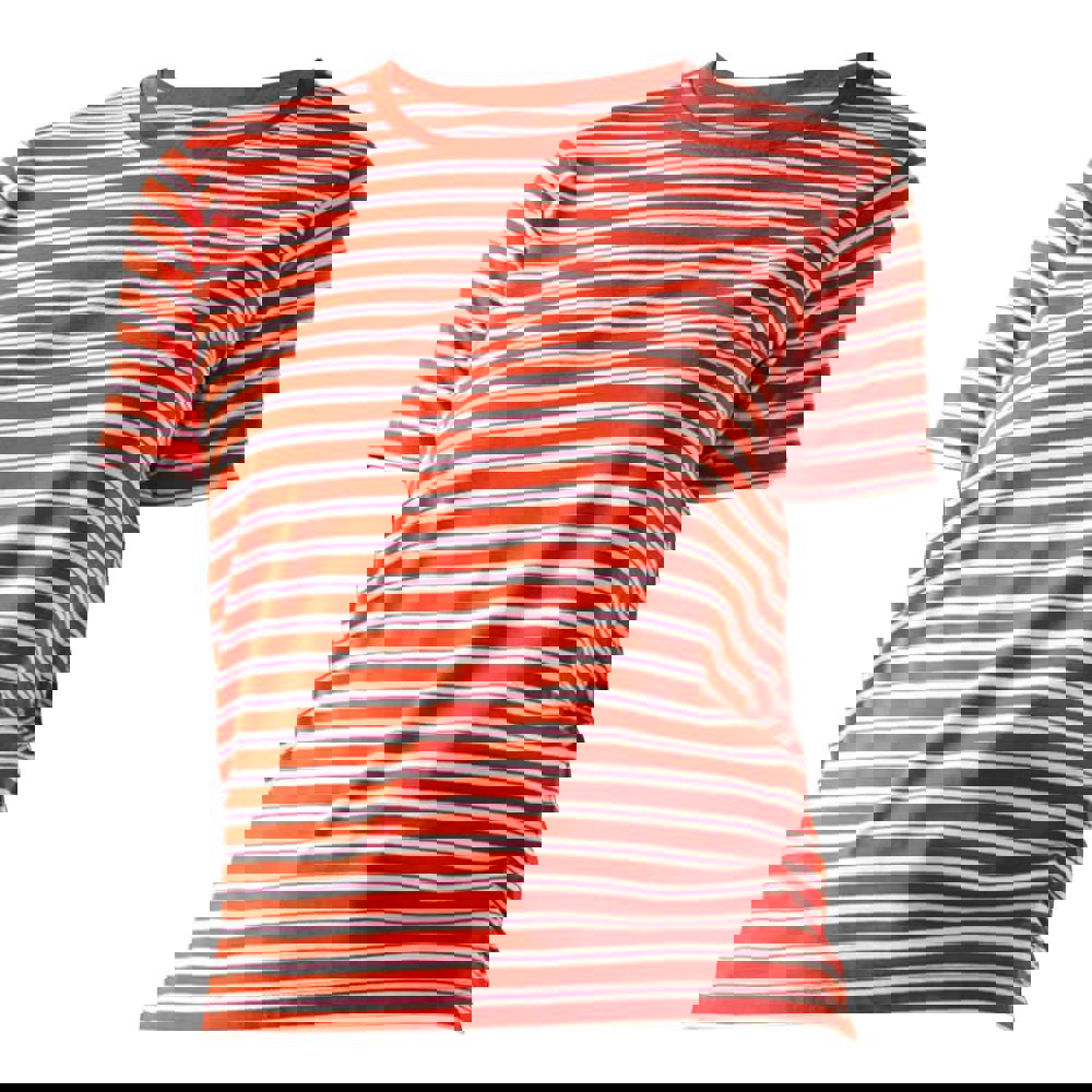 Regatta Bayletta is a women’s striped T-shirt in Tangerine Tango, made from a cotton and polyester blend. The jersey construction has a soft-touch handle and a 155gsm weight for a lightweight feel. Finished with a ribbed crew neckline and short sleeves, it offers a clean, simple shape for everyday wear.