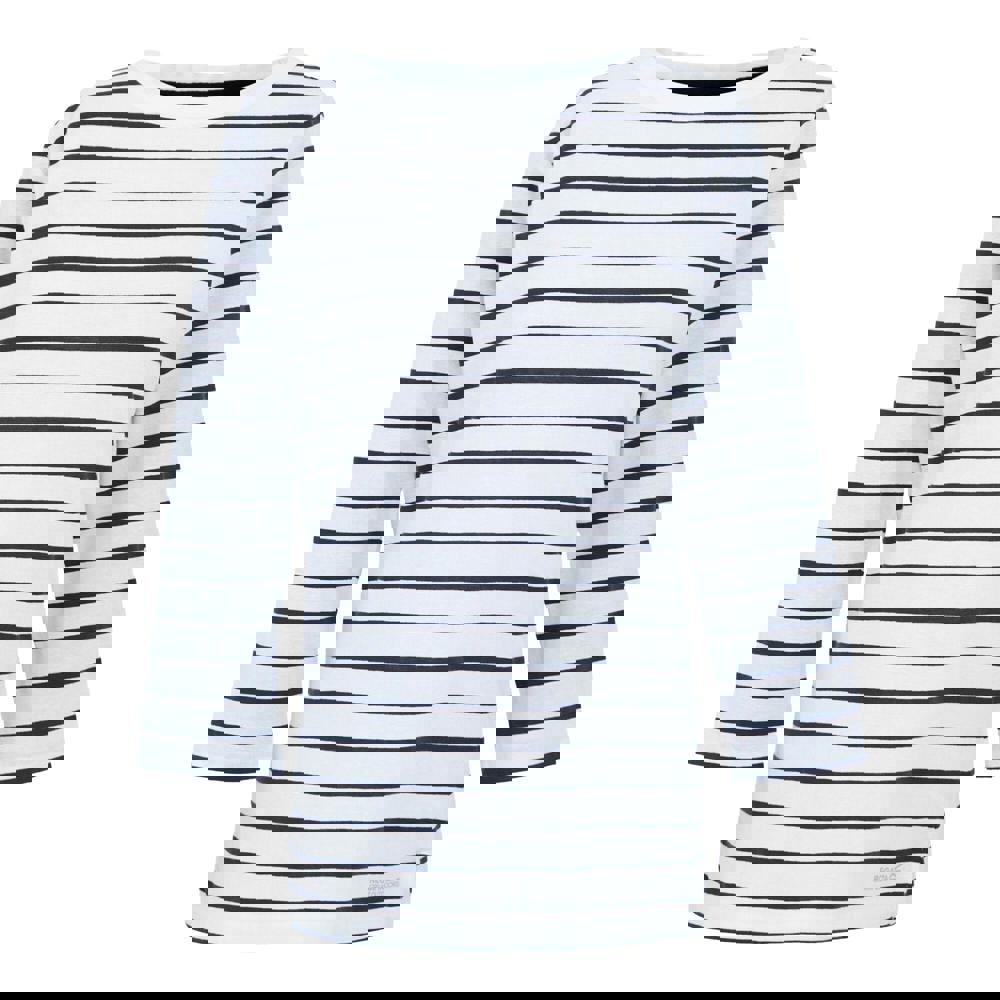Refresh everyday outfits with this Regatta Baylette II striped T-shirt in white and navy. Made from a 50% cotton and 50% polyester blend, it uses Coolweave material with a 155gsm weight. The design combines stripes with a logo detail for a clean, casual look.