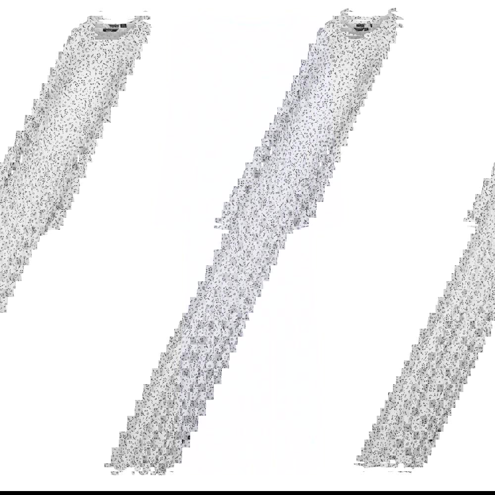 This mid length casual dress is made from 100% viscose with a soft-touch finish. It comes in white with a ditsy print for a detailed, all-over look. A round neckline and long sleeves create a clean, simple silhouette, while a branded tab adds a subtle finishing detail.