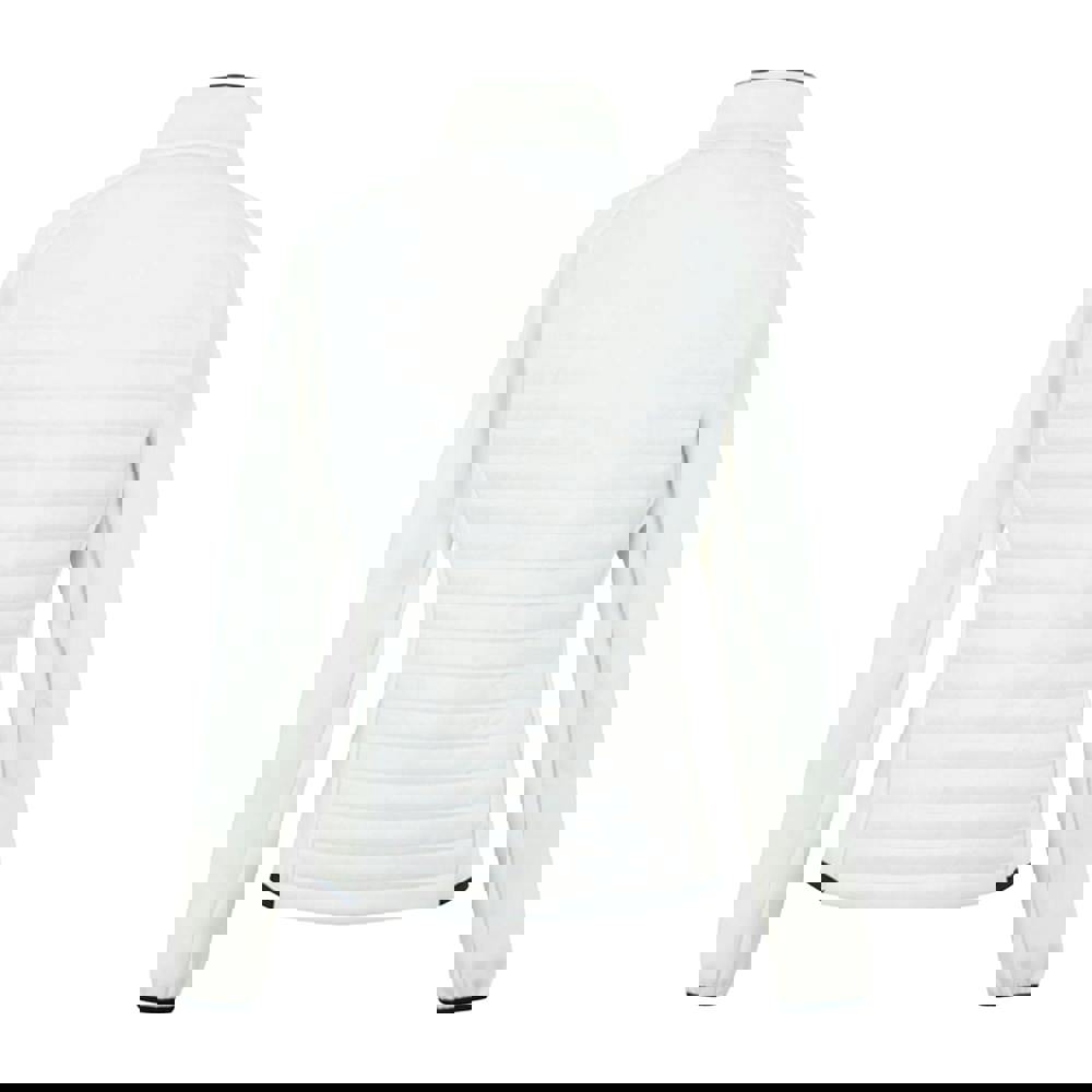 A high-neck with stretch binding and long sleeves create a clean outline, while stretch binding at the cuffs and hem keeps the edges neat. A full zip fastening with an inner zip guard secures the front, and two zipped side pockets provide practical storage. Made from recycled materials.