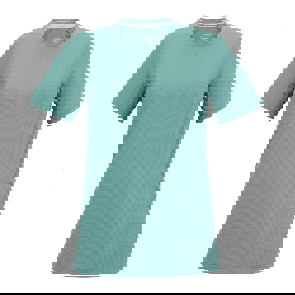 The Regatta Demna T-shirt in ivy moss is made from a jacquard mesh material with a 100gsm weight. It combines a plain finish with logo detailing and is cut with a crew neckline and short sleeves.