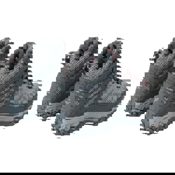 These Regatta Edgepoint IV walking boots come in Dark Steel/Dusty Rose with a mid cut and a round toe. The upper combines durable polyester with PU (polyurethane) and has a water resistant finish. An Isotex membrane insole sits inside, while the moulded TPR outsole is lightweight, hardwearing and gripped for underfoot traction.