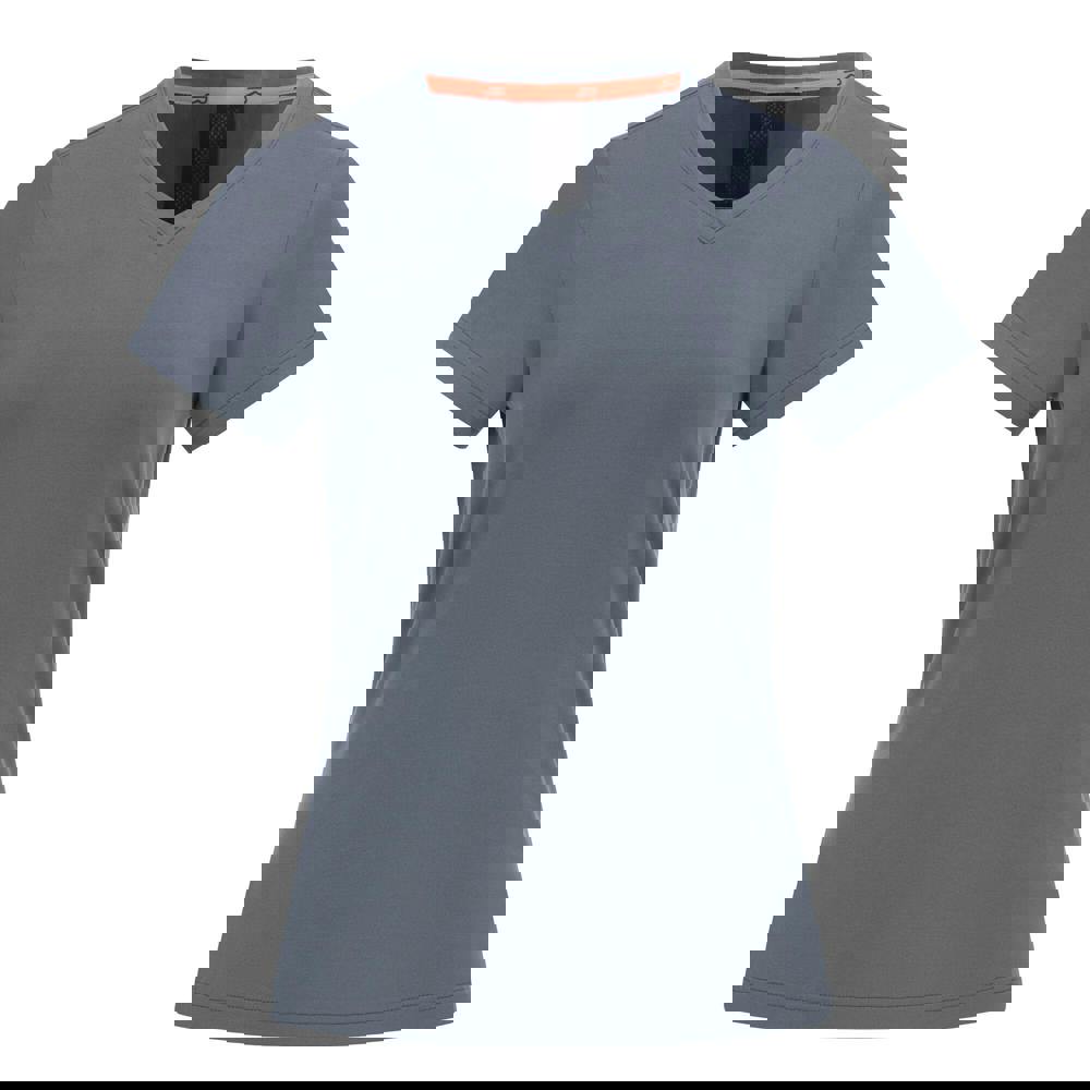 The Elkie T-shirt from Regatta comes in storm grey with a plain design and a soft peached finish. Made from 95% recycled polyester and 5% elastane, it has a short-sleeved cut with a V neck and a split hem. Chain stitch detailing completes the construction, with a 170gsm weight.
