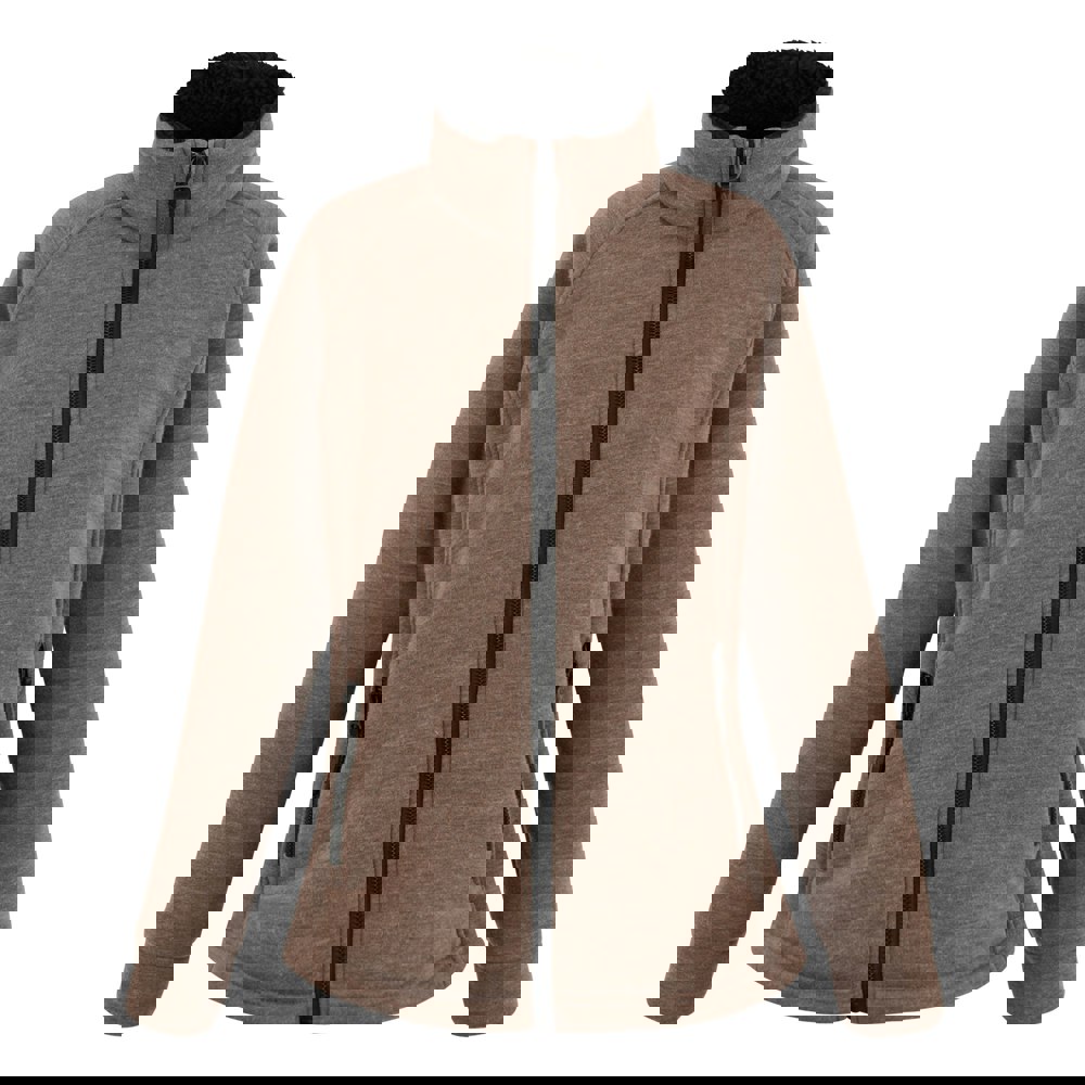 This full zip fleece jacket is made from 95% polyester and 5% viscose, with a bonded, knitted construction and a high-pile fleece finish. The plain design is paired with long raglan sleeves and a standing collar for a clean, practical look.