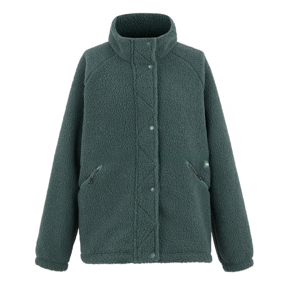 This full zip fleece jacket is made from 100% polyester and uses borg fleece with a soft-touch finish. The plain design is finished in Spruce Green and includes piping detail for a clean, defined look. A standing collar and long raglan sleeves create a streamlined shape that works well for everyday layering.