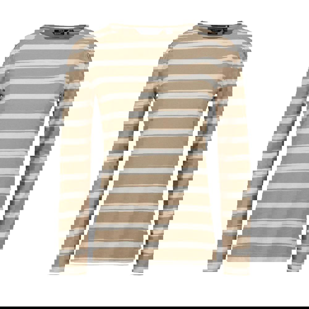Regatta Federica is a long-sleeved striped T-shirt with a crew neck and contrast detailing. Made from a cotton and polyester blend, it uses yarn-dyed material for a defined stripe finish. A gathered sleeve head and shoulder yoke add structure to the shape, keeping the look clean and easy to wear.