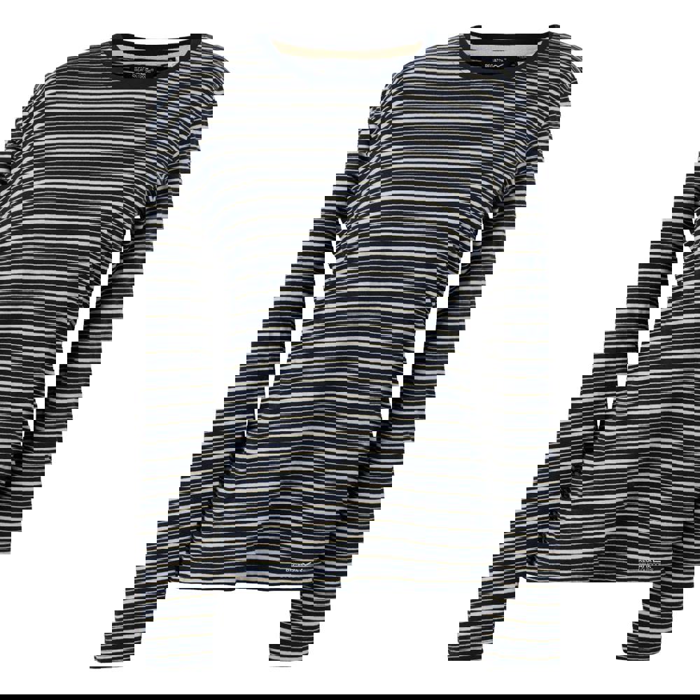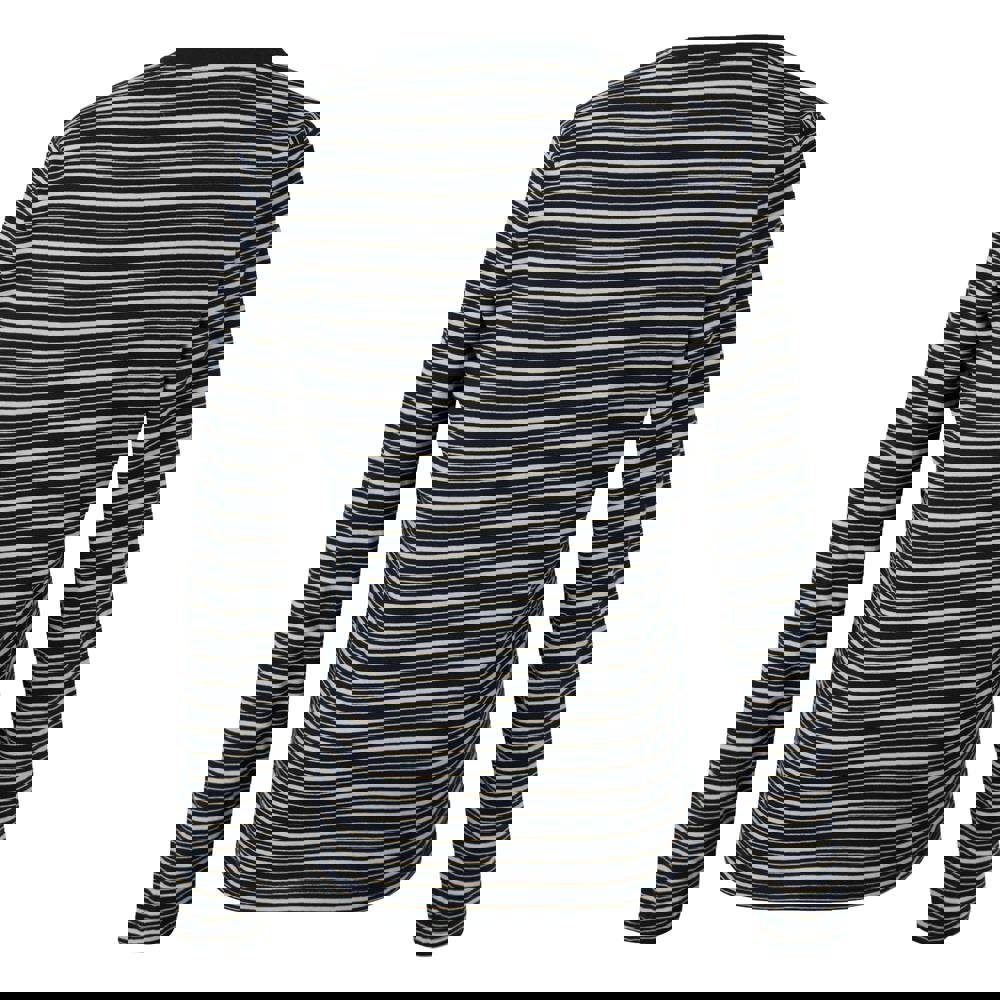 This long-sleeved striped T-shirt is made from a 60% cotton and 40% polyester blend. It uses single jersey yarn with a 155gsm weight and is finished with a contrast stripe design. A crew neckline keeps the look clean and simple, while the side split hem adds a subtle detail to the shape.