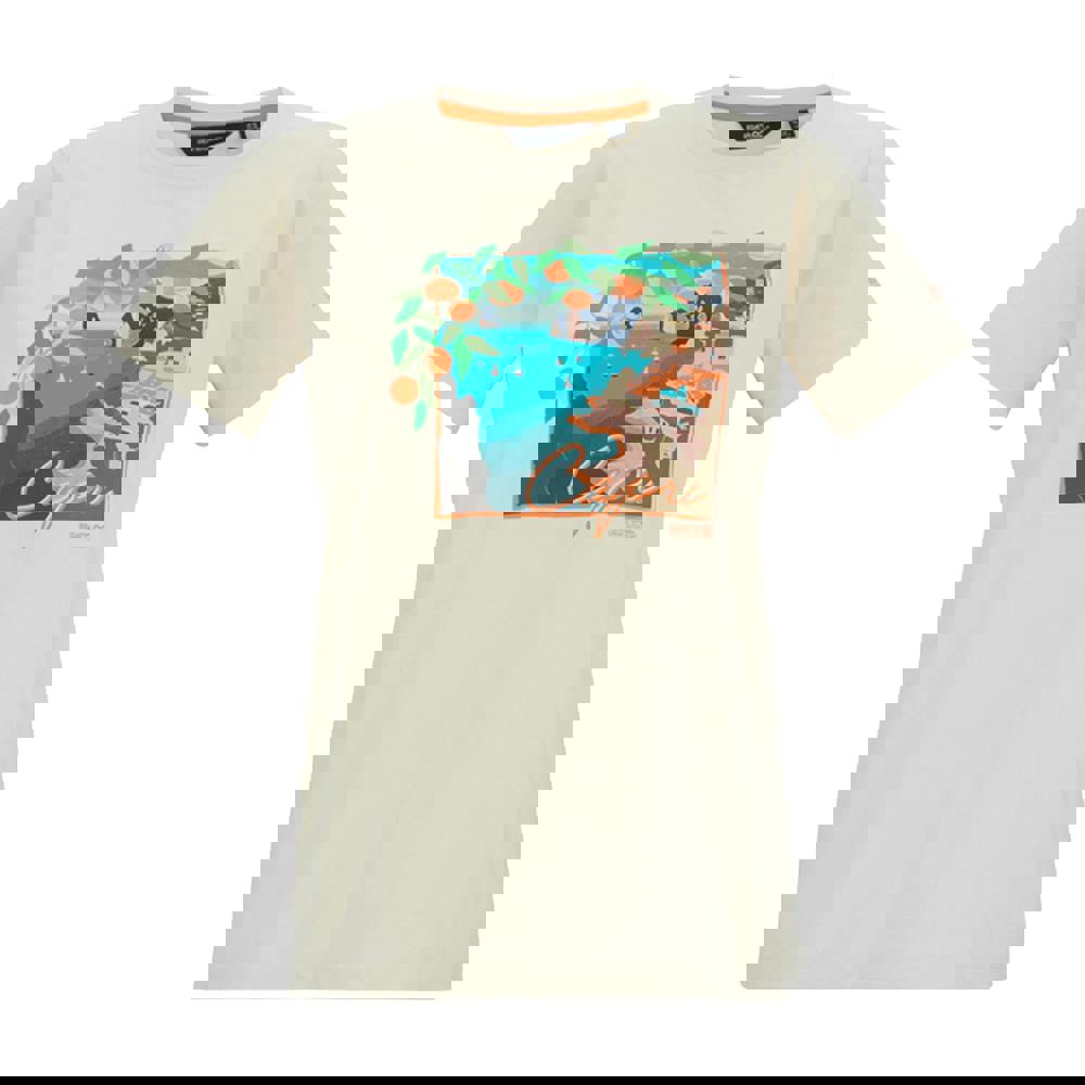 The Regatta Filandra VX Capri Seaside T-Shirt comes in Light Vanilla with a printed design and a classic crew neck. Made from a cotton and viscose blend, it uses Coolweave single jersey with a soft-touch finish and a 160gsm weight. Short sleeves keep the look simple and easy to wear for everyday outfits.