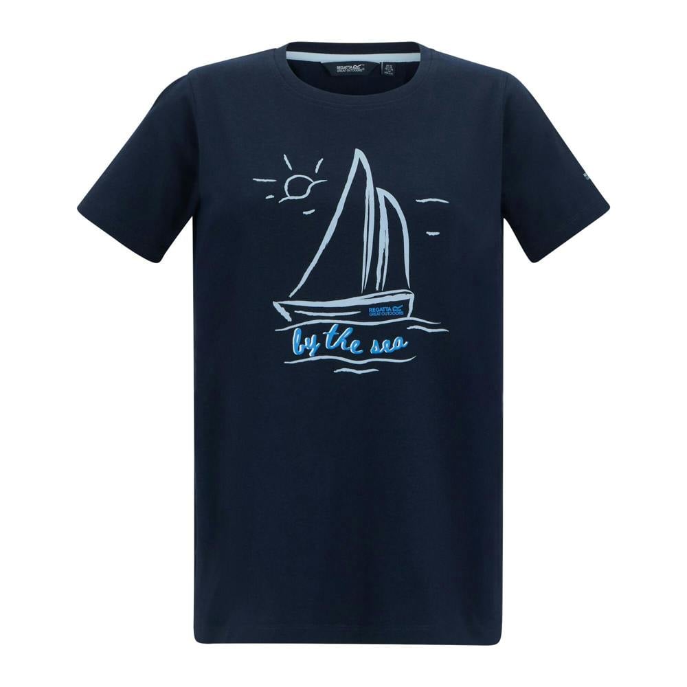 This Regatta Filandra VX T-shirt comes in navy with a printed sailboat design. Made from 95% cotton and 5% viscose, it uses Coolweave single jersey with a soft-touch finish. A crew neckline and short sleeves keep the look simple and easy to wear for everyday outfits.