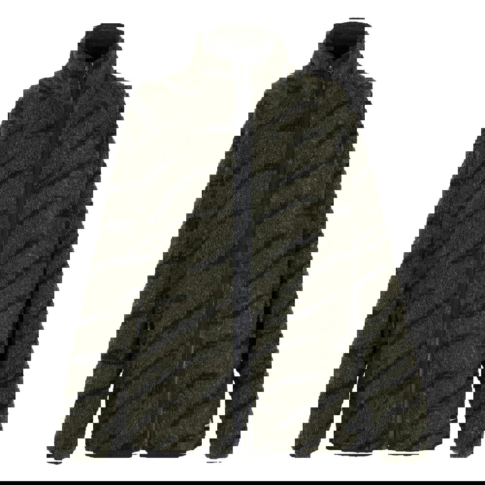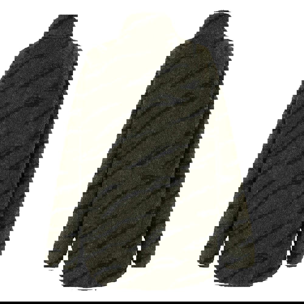 This full zip fleece jacket is made from 100% polyester and uses borg material with a plush, soft-touch finish. It comes in a plain dark khaki and black colourway and is constructed with flatlock stitching. Long raglan sleeves and a standing collar create a clean, practical shape for everyday layering.