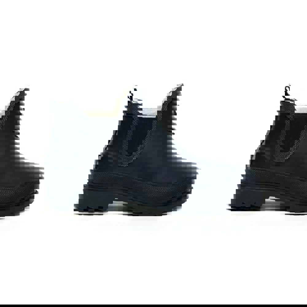 These ankle-height wellingtons are made with a vulcanised natural rubber construction for durable weather protection. A warm faux fur lining adds comfort, while the EVA comfort footbed supports everyday wear. Finished in navy, the design is completed with a multi-directional, cleated sole and a square heel for reliable underfoot stability.