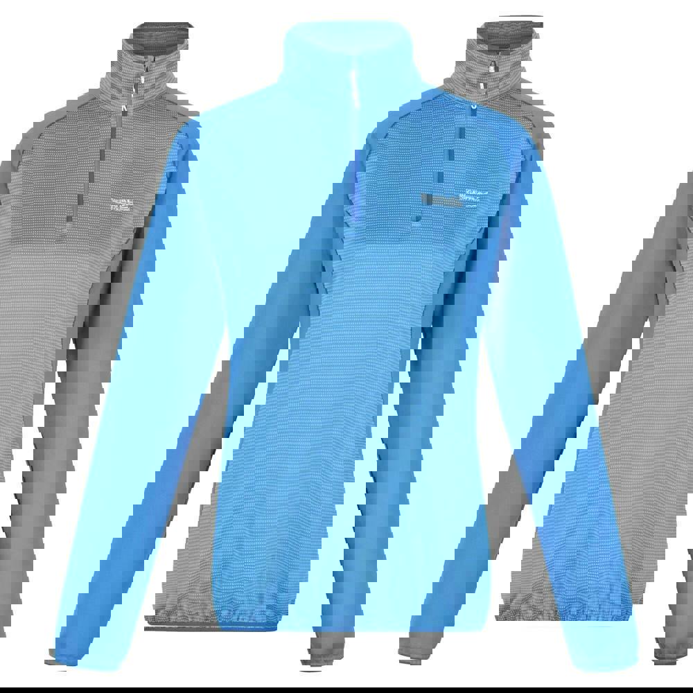 This Regatta Highton II fleece comes in a two tone Sonic Blue design with contrast trim and a dotted logo detail. Made from 100% polyester with stretch fabric, it includes Extol stretch panels for added flexibility. A standing collar with stretch binding and a half zip fastening create a clean, practical finish for everyday wear and layering.