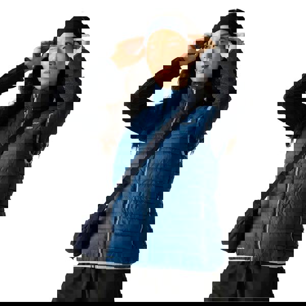 Built with 20D material, it is lightweight, insulating and water repellent. The padded construction is bulk free and compressible, with a feather free down fill and packaway design for easy storage. Two lower zip pockets provide secure space for small essentials.