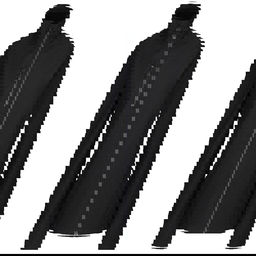 This women’s soft shell jacket is made from woven recycled polyester with a double-layer construction and a plain finish. Long sleeves, open cuffs and an open hem keep the silhouette clean, while a zip neck and full zip fastening provide straightforward wear for everyday layering.