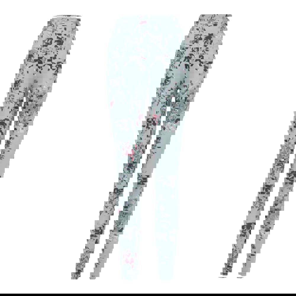 These floral printed leggings come in glacier green with a soft-touch finish and a form-fit shape. Made from 82% recycled polyester and 18% elastane, they are lightweight and quick drying, with moisture-wicking and antibacterial fabric technology. Flat locked seams add a clean finish, while an elasticated waist and self-fabric inner waistband provide a secure feel for movement-based sessions.