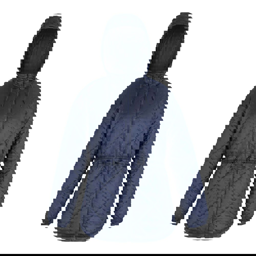 Long sleeves are finished with elasticated cuffs, while the curved hem adjusts via a shockcord for a secure fit. A full zip fastening runs through the front, and two welted side pockets provide simple storage. Made from recycled materials.