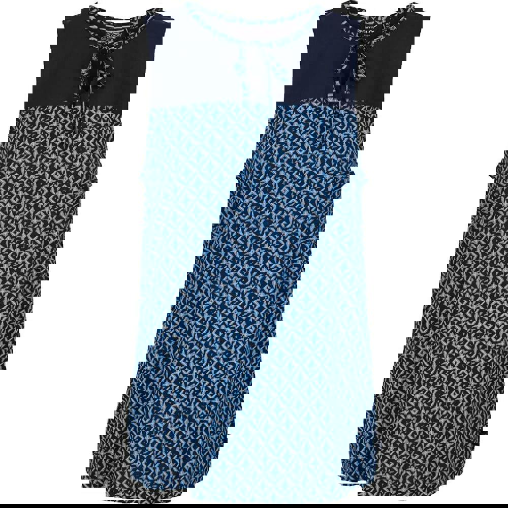 This sleeveless top comes in navy with a V neck and a shaped hem. The design combines lace, stars and tile detailing, finished with a tie detail and a V insert. A branded tab and a tearaway label complete the look.
