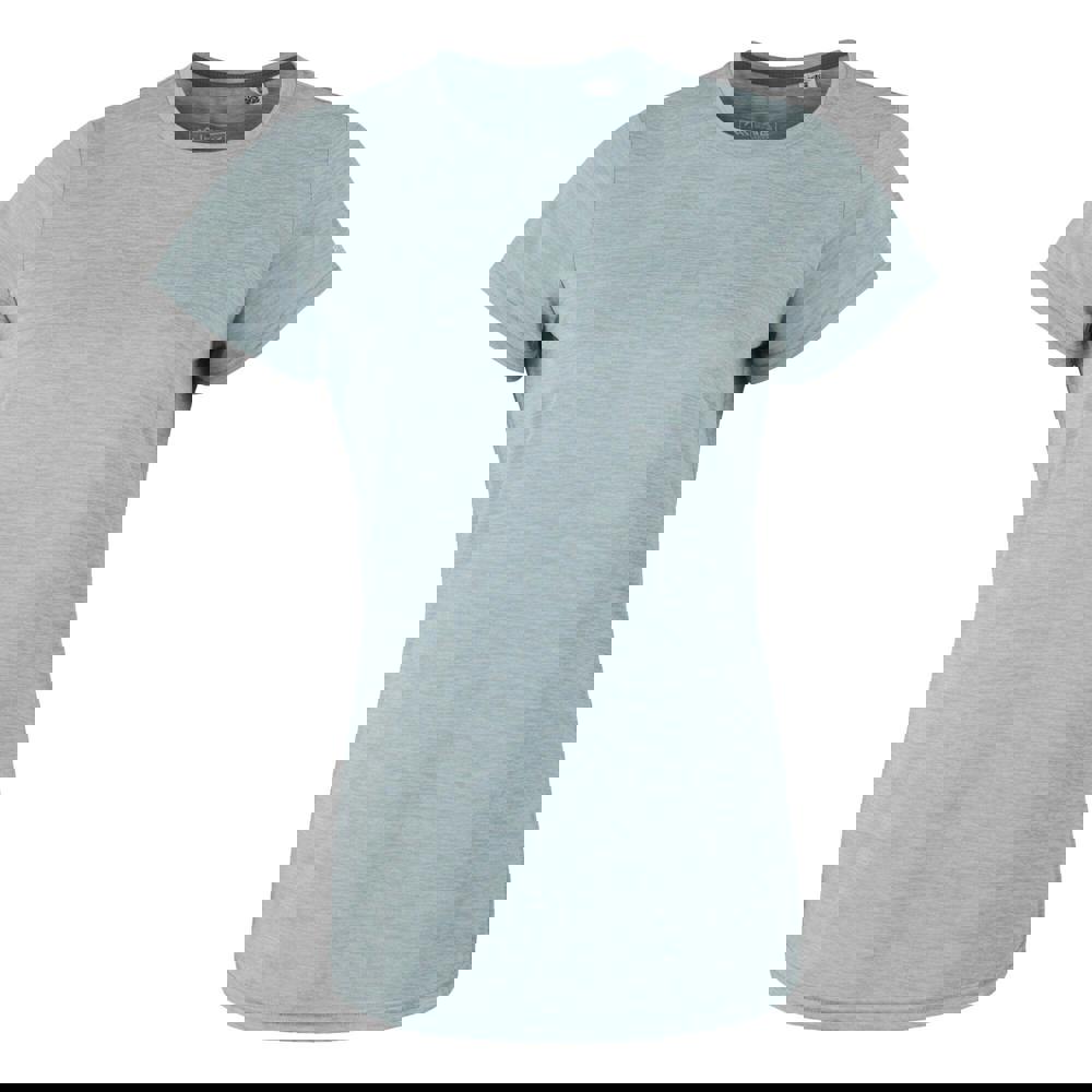 This short-sleeved T-shirt is made from 100% polyester in a jersey, knitted construction. It comes in Green Haze with a marl finish and logo design, finished with a crew neckline for a clean, casual look.