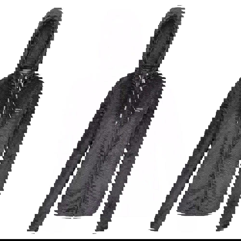 Regatta Julissa II is a fluffy fleece jacket in seal grey, made from 100% polyester with a 260gsm weight. It has an embossed zig zag design and a hooded neckline with a grown-on hood and drawcord for adjustment. A full zip fastening runs through the front, making it easy to wear open or closed.