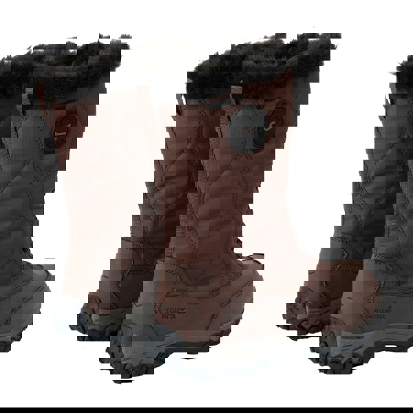 These Regatta Kirkwood walking boots come in chestnut brown and black with a plain design and an ankle-high cut. The upper combines durable polyester with PU (polyurethane) and a PU mudguard, finished with a water-resistant construction. A breathable synthetic lining is waterproof, while the insole uses an Isotex membrane with TECFOAM for underfoot structure.