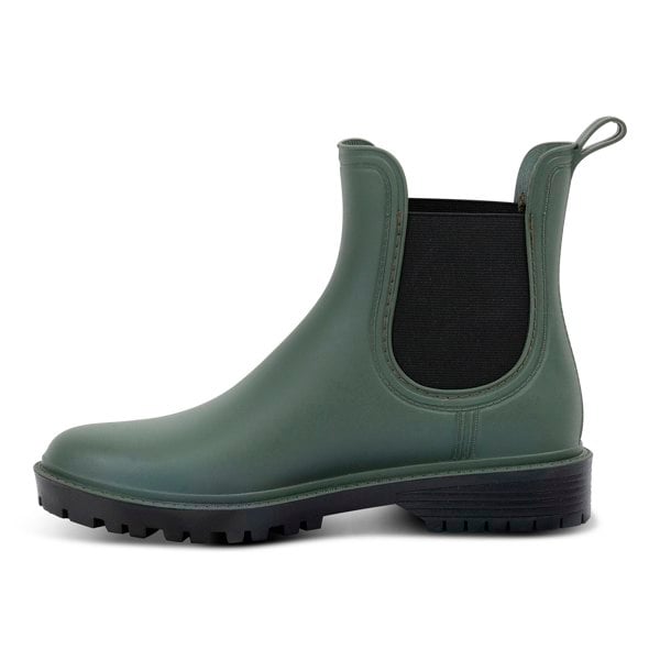 Finished in deep green, the design combines polka dots with a logo detail. Underneath, the sole has multi directional grooves for a defined tread pattern, while the round toe completes the silhouette.