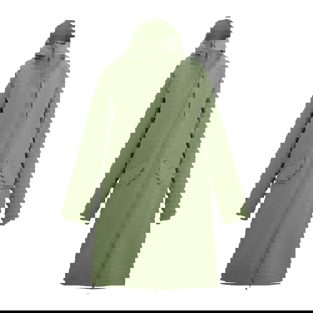 The Regatta Levita waterproof jacket is made from 100% recycled polyester with a stretch fabric and a plain finish. It is hooded with a grown on hood and long sleeves, offering a practical outer layer for wet and windy conditions.