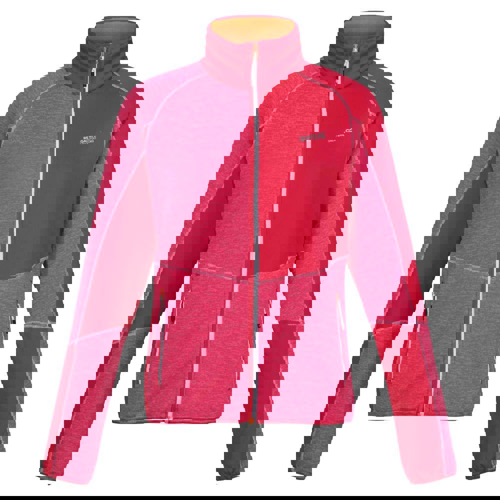 This Regatta Lindalla VII marl fleece jacket is made from Extol Stretch fleece in a 240gsm weight, with a colour block design and logo detail. The material blend includes recycled polyester, viscose and elastane, and it is made from recycled materials.