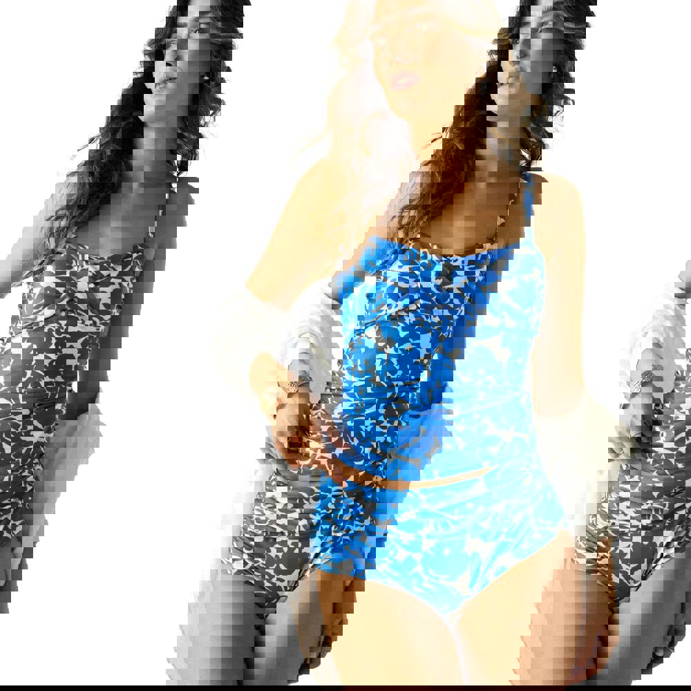 These Regatta Loria Fleur Bloom bikini bottoms come in blue with a floral design and a pull-on fastening. Made from 85% recycled polyester and 15% elastane, they are finished with a 200gsm construction. A high-waist shape and tummy control detail complete the silhouette for a secure, streamlined look at the pool or beach.