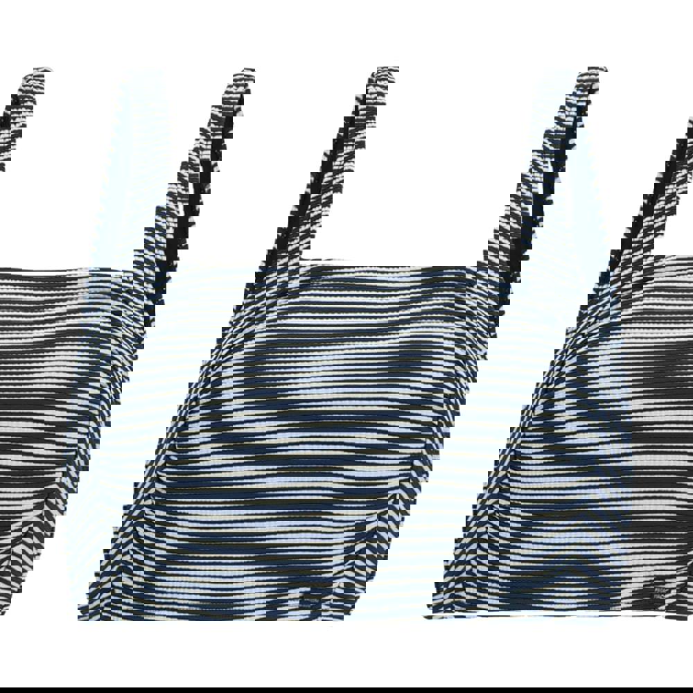 Regatta Loria Stripe bikini top in navy and white with a striped design. Made from 51% polyester, 33% polyamide and 16% elastane, with a 230gsm construction. The square neckline creates a clean, structured look, while adjustable straps allow the fit to be altered as needed.