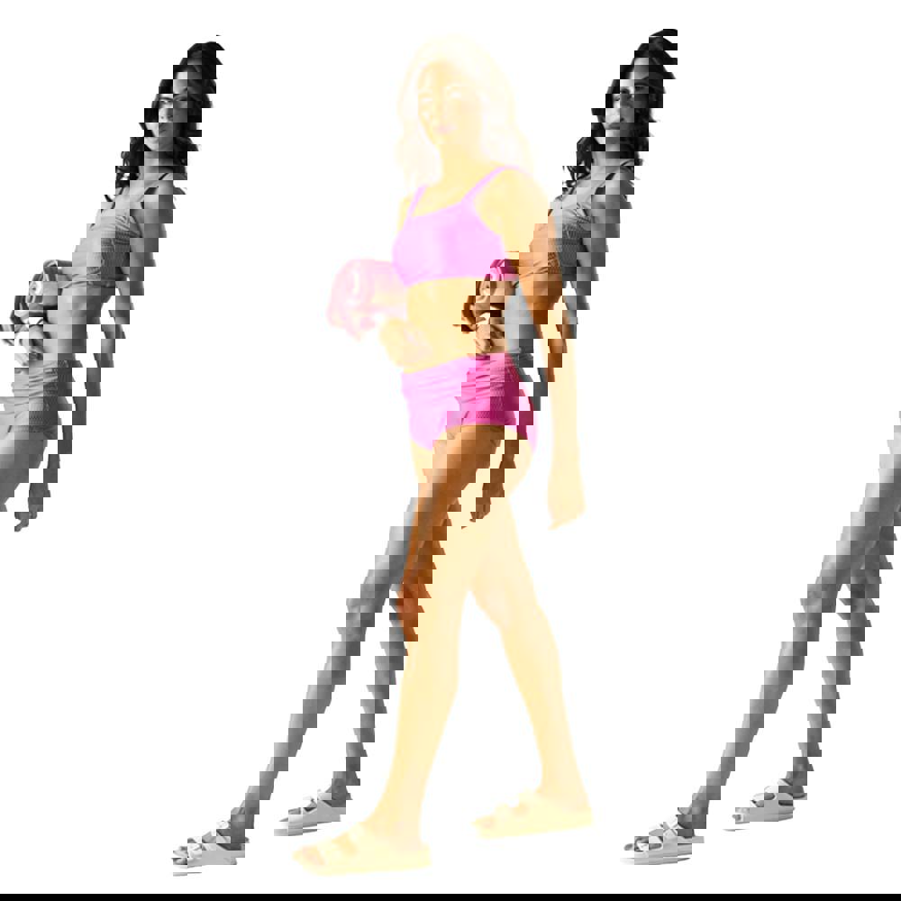 This bikini top is made from 85% recycled polyester and 15% elastane, finished in a pink wave pattern with a 230gsm handle. It has a square neckline and a square back for a clean, structured look.