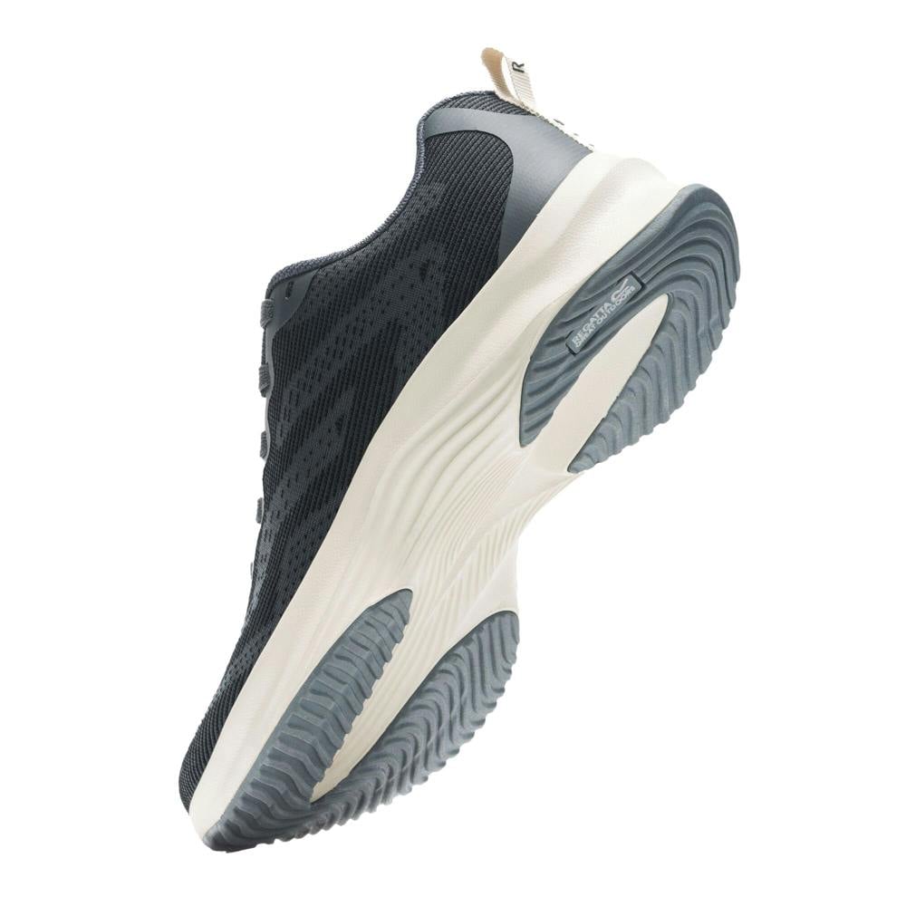 These Regatta Marine Sport II trainers come in storm grey with a plain, low-cut profile. The upper combines knitted and woven construction in polyester and polypropylene, finished with a lace-up fastening through five eyelets. A round toe and flat shape keep the silhouette clean and simple for everyday wear.