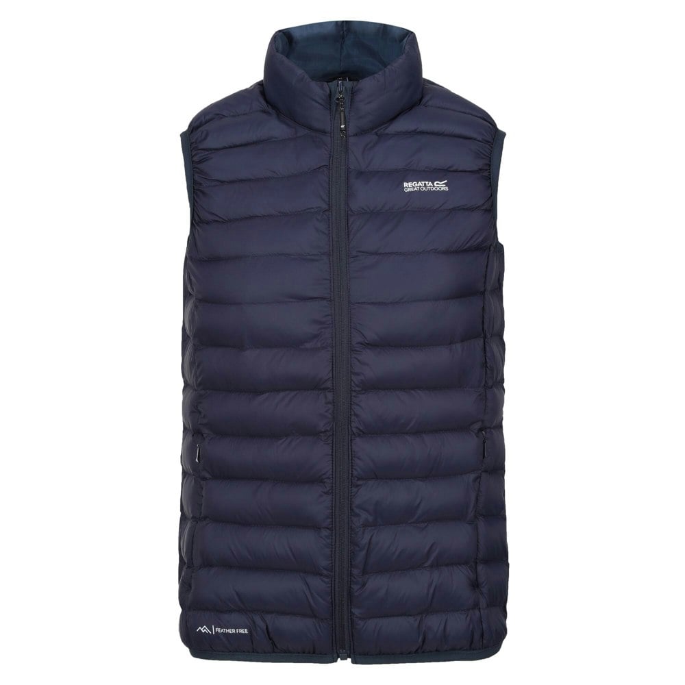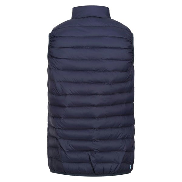 The Regatta Women’s Marizion gilet in Navy/Sea Haze is made from 100% polyamide with a lined, quilted construction. It has a faux down filling that is feather-free and recycled, with a DWR finish and a lightweight, insulating feel. A standing collar and sleeveless cut make it suitable for layering, while stretch binding at the armholes and hem provides a neat finish.