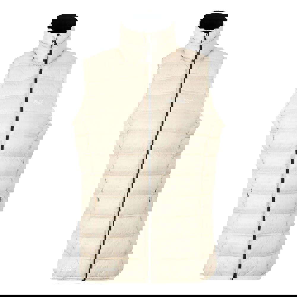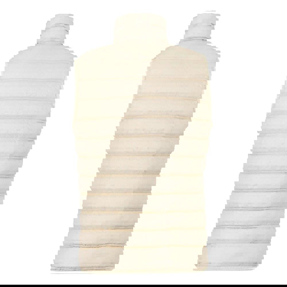 This sleeveless gilet is made from 100% polyamide with a lined, quilted construction and a logo detail. It uses faux down filling that is feather-free and recycled, and is finished with a DWR treatment. A standing collar and full zip fastening create a clean, practical shape, while stretch binding at the armholes and hem adds a neat edge.