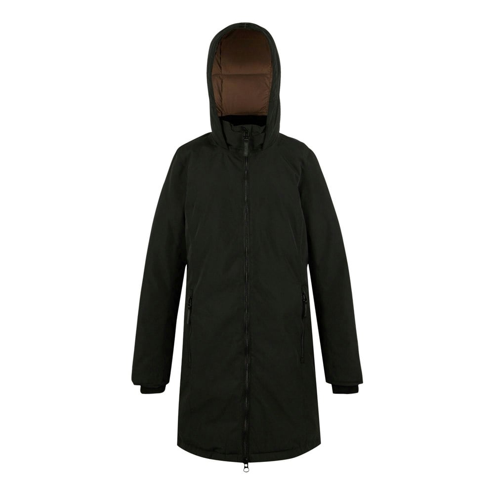 This long Regatta women’s jacket is made with a 100% polyester outer and a 100% polyamide lining. The lining is baffled and filled with feather-free synthetic down insulation at 250gsm, with an outer weight of 185gsm and lining weight of 37gsm. A plain finish is paired with logo detailing.